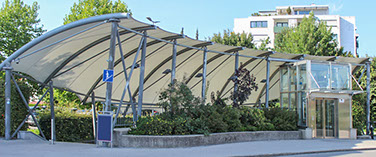 > Bogenkonstruktion auf Stahlstützen