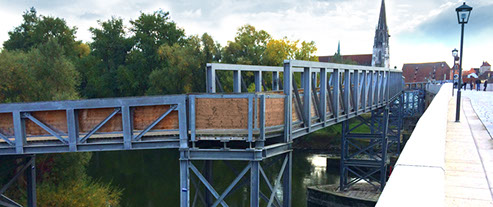 > Schrägseibrücke mit Stahlpylonpaar (32m)